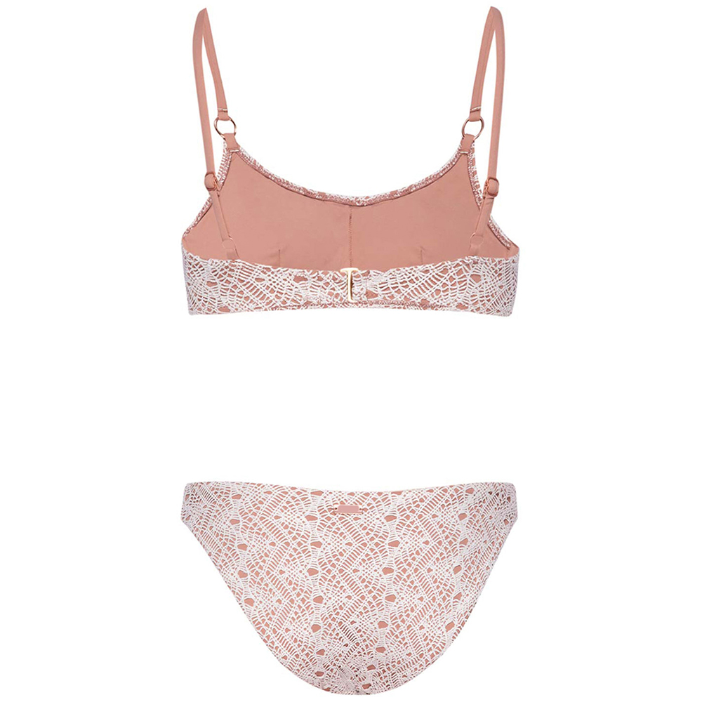 Full lace bra frame and back band Side boning to provide better band grip Bikini style panty with lace on