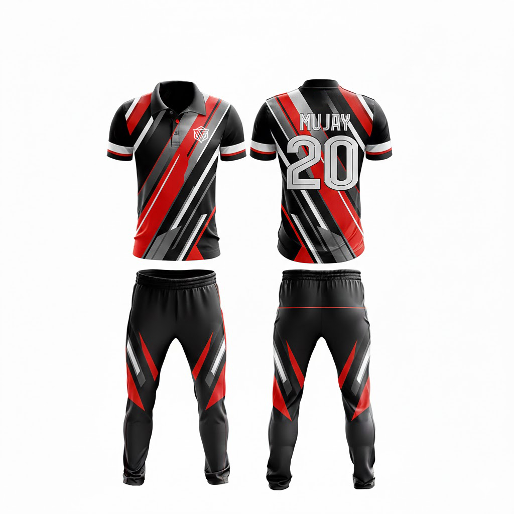 • A cricket uniform is the standard attire worn by players during matches, designed for comfort and performance. It includes a lightweight shirt, trousers, and cap or hat, made from breathable, moisture-wicking fabric. The uniform ensures flexibility and ease of movement, while also representing the team’s colors and logo. It is designed to keep players cool and dry, enhancing their focus and performance on the field.