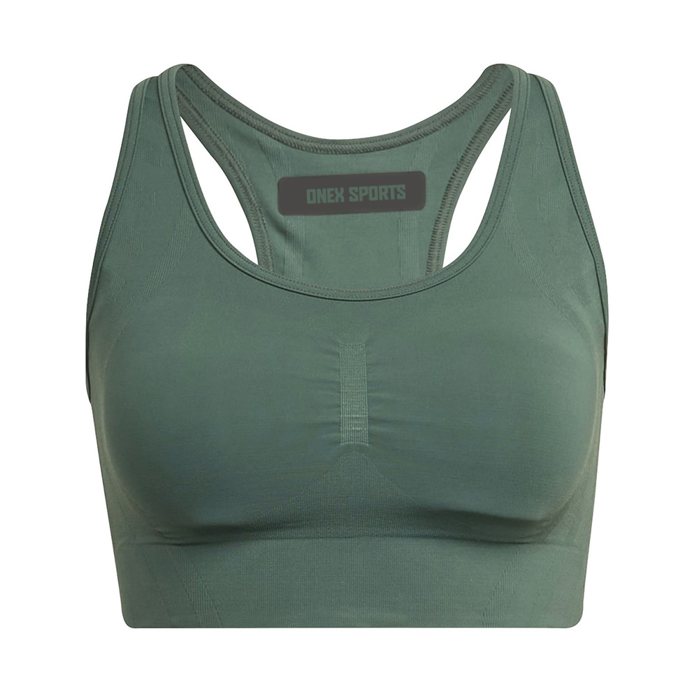 • Perform your best in a fit that’s true to you. Ribbed sports bra features customizable comfort that will allow your movement to be free and effortless without any restrictions. With a scooped neckline and racer back detail, this bra was designed for style and comfort. Medium Support Sports Bra. Applicable Scene: Running, Fitness, Sports Trends– Medium support