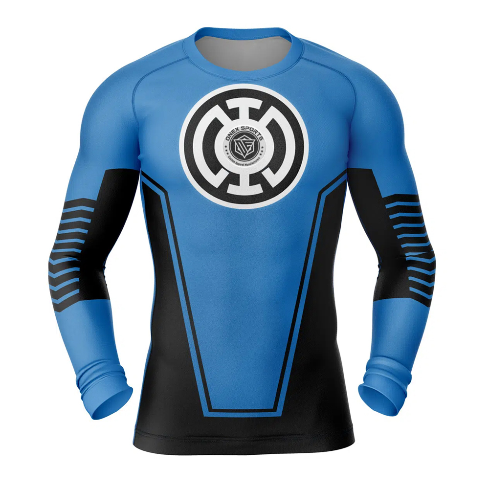 - This Long Sleeve Rash Guard is crafted with long sleeves and a crew neckline for a classic look. It features flat lock seams to prevent chafing and is a lightweight construction. This guard is designed with a signature logo and is complete with branding.